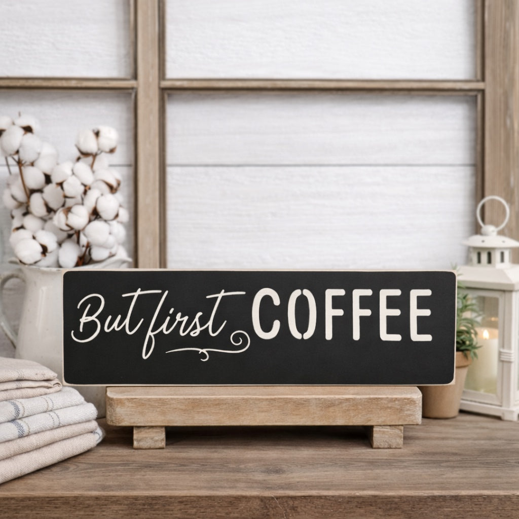 This “But First Coffee” wood sign adds the perfect cozy touch to your kitchen, coffee bar, or breakfast nook. Its simple farmhouse style blends beautifully with neutral, rustic, or modern spaces.
