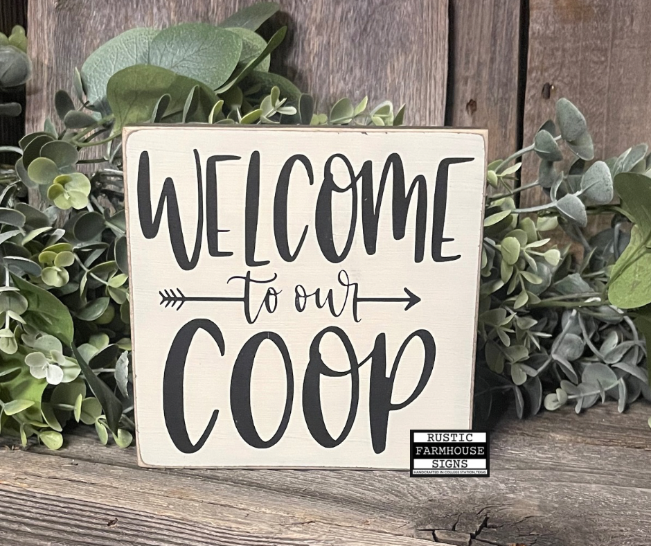 Welcome To Our Coop Mini Wood Sign - Tired Tray Sign - Shelf Sitter Sign